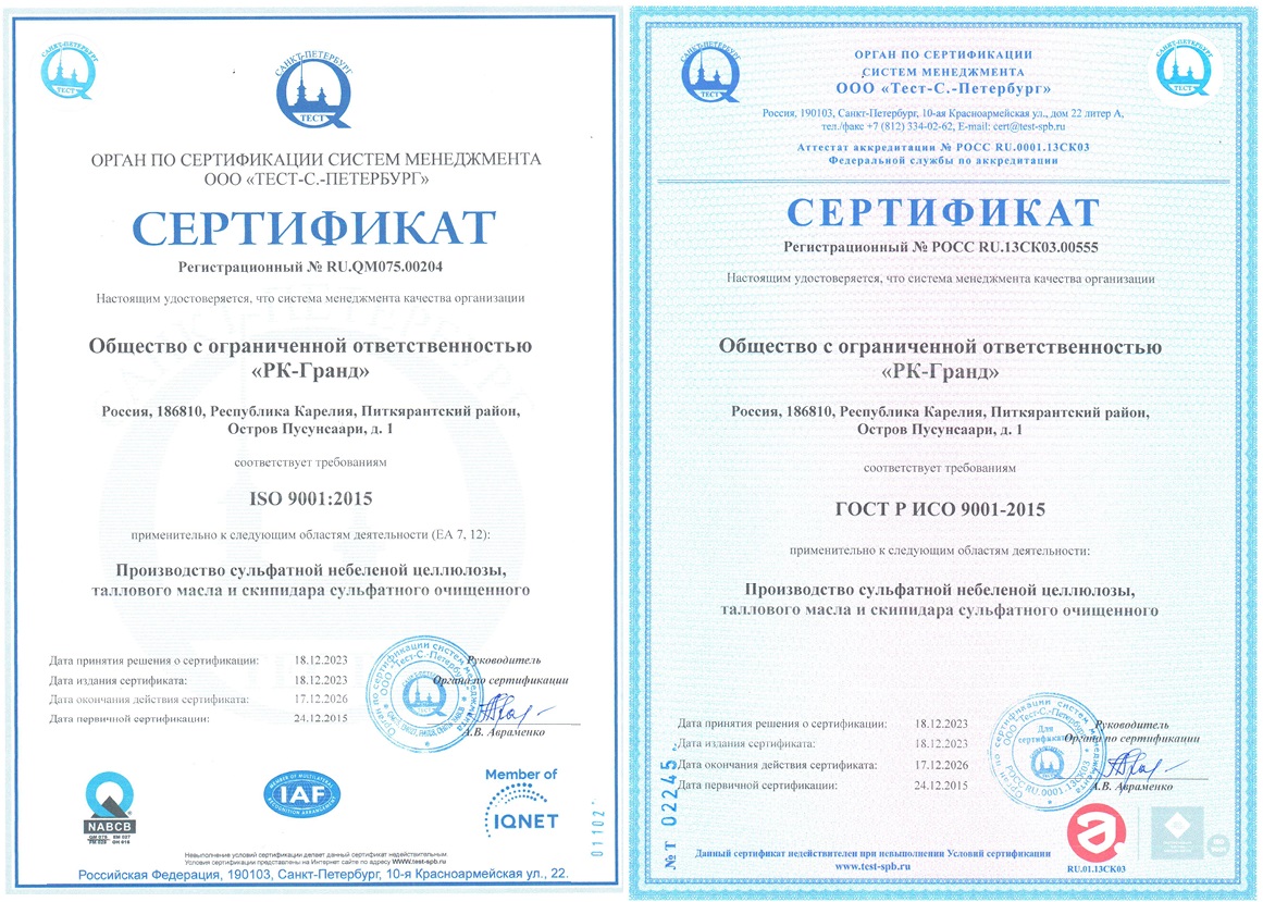 ООО «РК-Гранд» производит сульфатную небеленую целлюлозу из древесины хвойных пород для производства электроизоляционного картона, многослойной кабельной, трансформаторной бумаги, фиброцемента и других видов продукции. Производит скипидар и талловое масло.