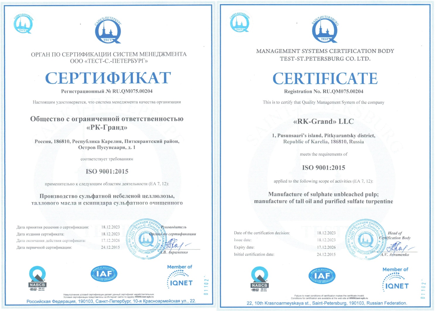ООО "РК-Гранд" производит сульфатную небелёную целлюлозу из древесины хвойных пород для производства электроизоляционного картона, многослойной кабельной, трансформаторной бумаги, фиброцемента и других видов продукции. Производит скипидар и талловое масло.